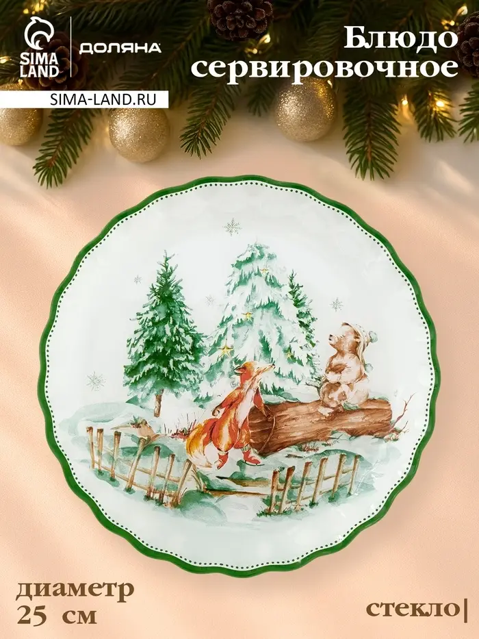 Блюдо сервировочное с бортиком "Зверьки в лесу" 25 см