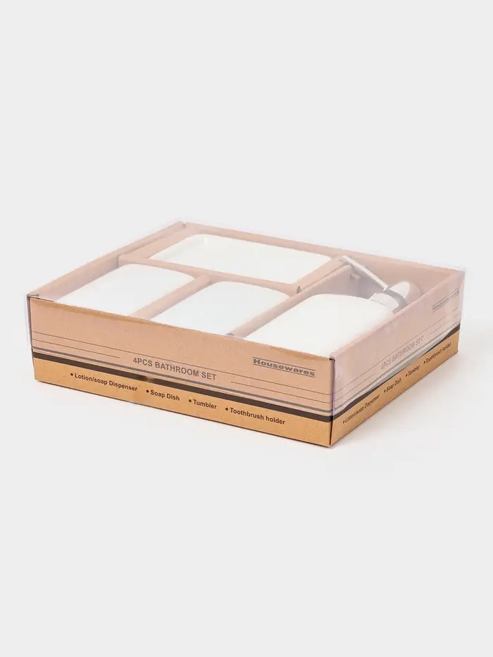 Набор для ванной "Кристаль", 4 предмета (дозатор для мыла, 2 стакана, мыльница)