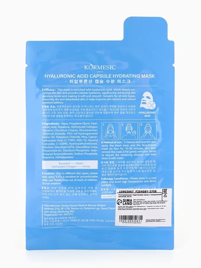 Успокаивающая гидрогелевая маска с гиалуроновой кислотой, 35 мл