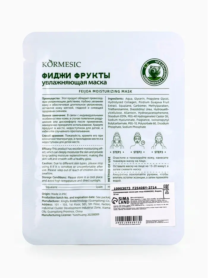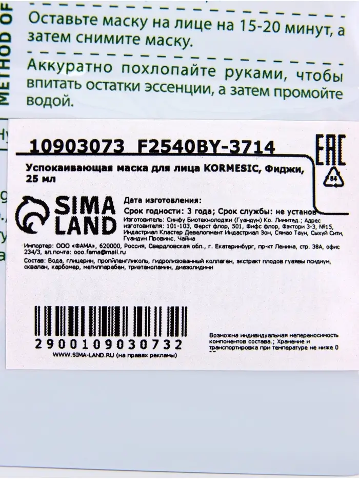 Успокаивающая маска для лица KORMESIC, Фиджи, 25 мл