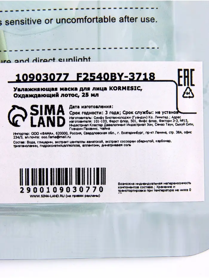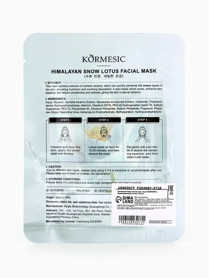 Увлажняющая маска для лица KORMESIC, Охдаждающий лотос, 25 мл