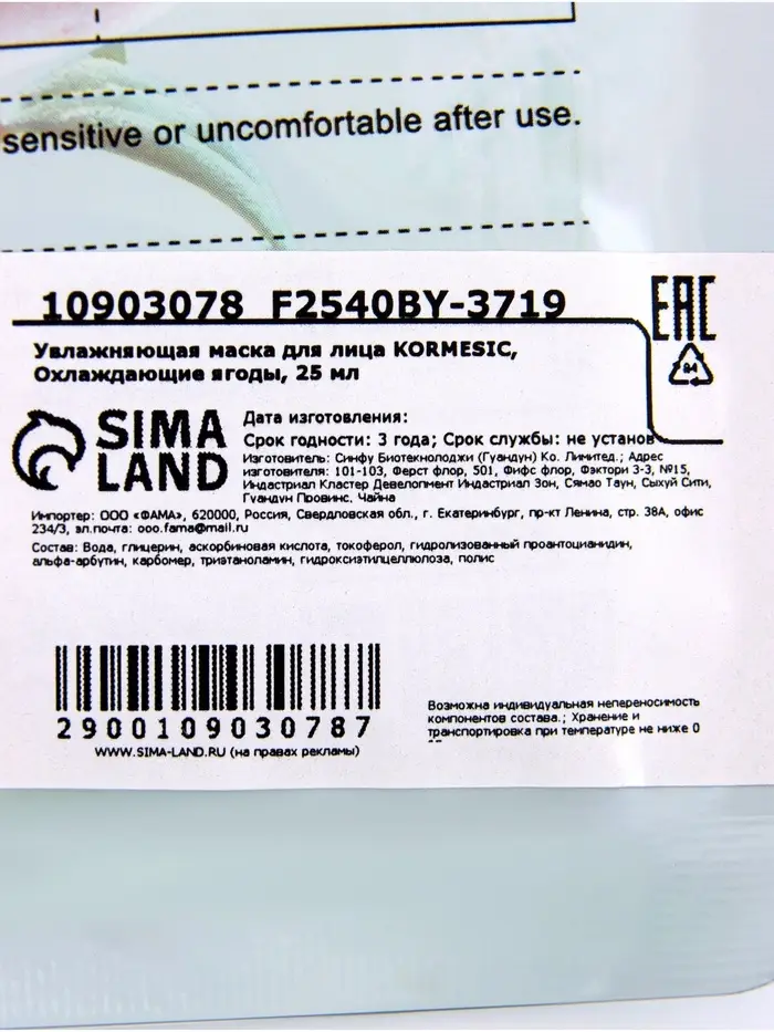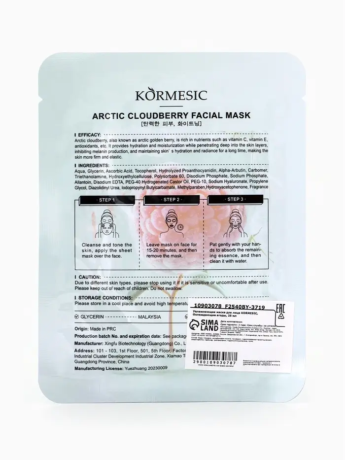 Увлажняющая маска для лица KORMESIC, Охлаждающие ягоды, 25 мл