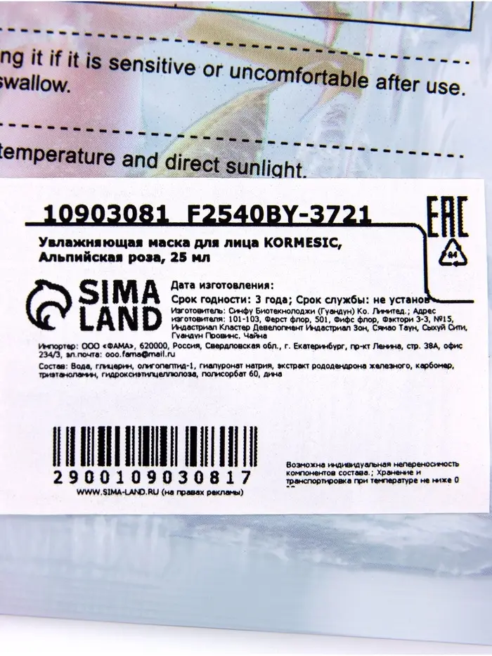 Увлажняющая маска для лица KORMESIC, Альпийская роза, 25 мл