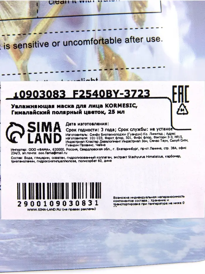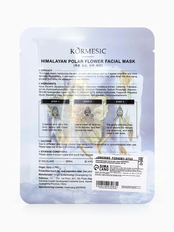 Маска тканевая для лица KORMESIC «Гималайский полярный цветок», увлажняющая, 25 мл