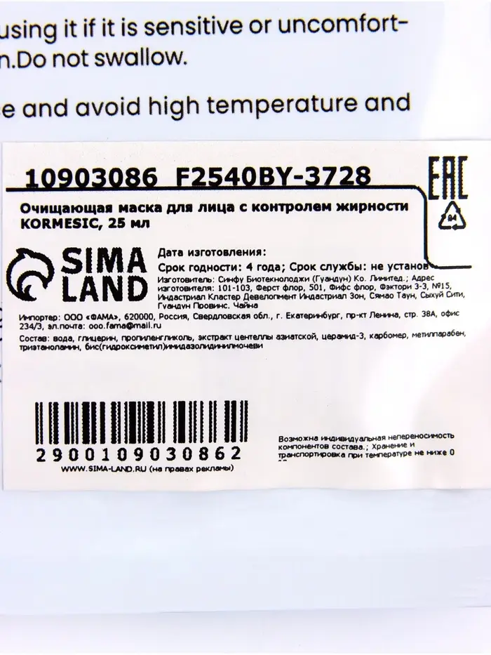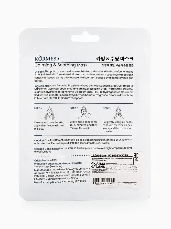 Очищающая маска для лица с контролем жирности KORMESIC, 25 мл