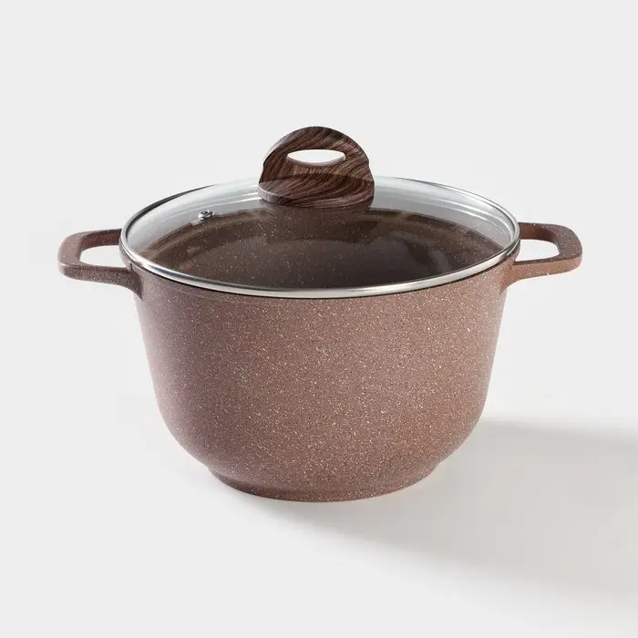 Казан «Брауни», 5 л, литой алюминий, стеклянная крышка, индукция