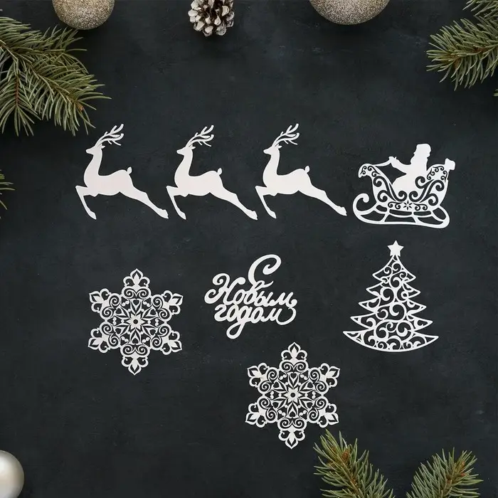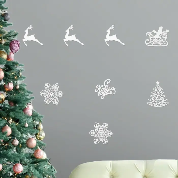С помощью этого набора вы с легкостью оформите интерьер любого помещения (офис, класс, холл, актовый зал), наполнив его яркими красками и новогодней атмосферой. В наборе13 предметов.