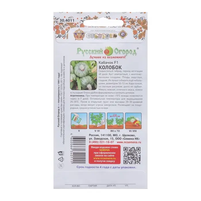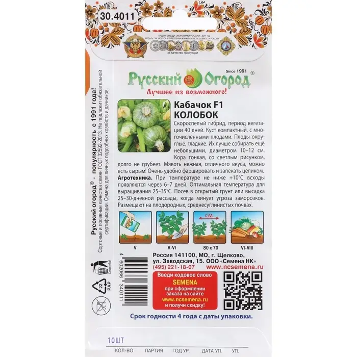 Семена Кабачок «Колобок», 10 шт., «Русский огород»