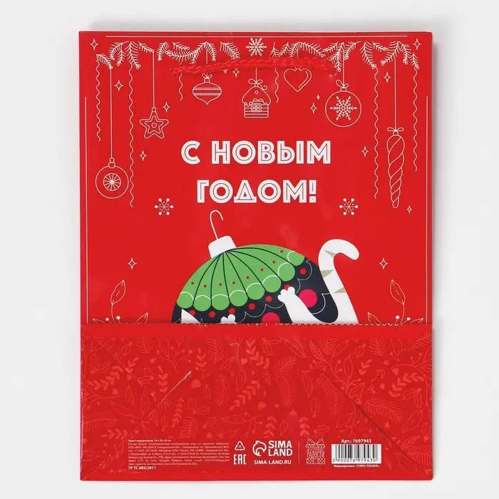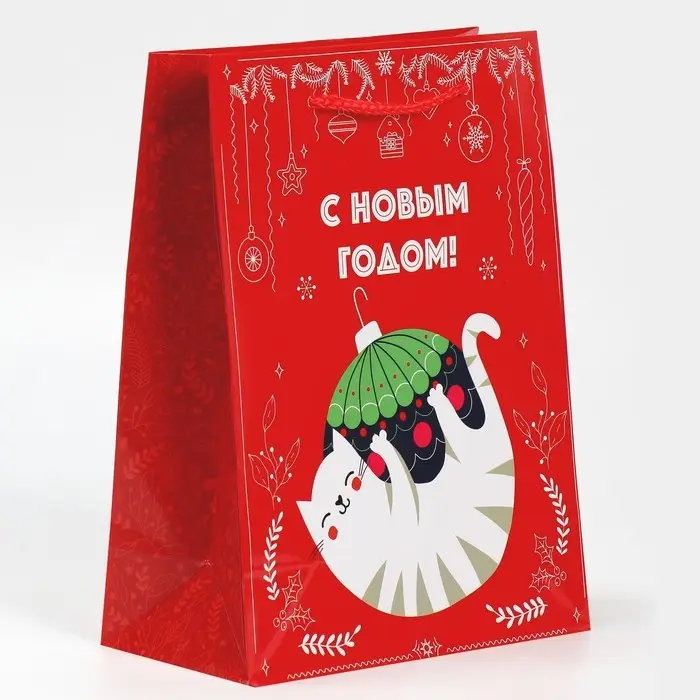 Пакет подарочный новогодний ламинированный «Котейка», MS 18 х 23 х 8 см