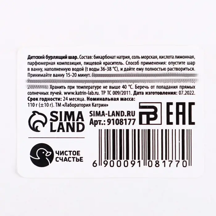 Состав: бикорбанат натрия, соль морская, кислота лимонная, парфюмерная композиция, пищевой краситель.