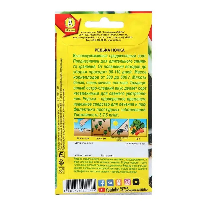 Семена Редька "Зимняя круглая чёрная", среднеспелая, 1 г