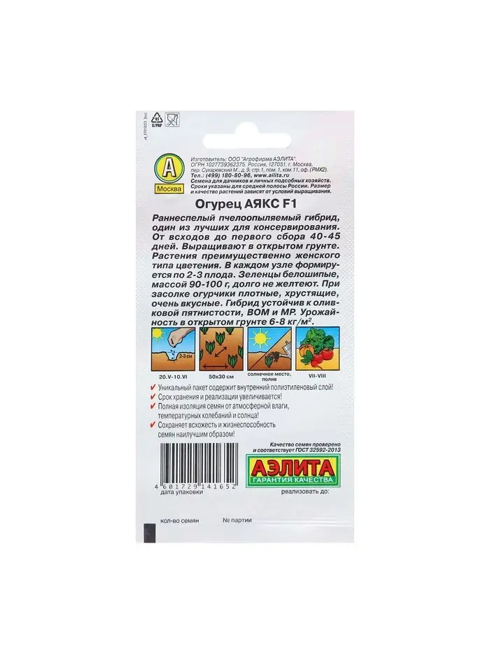 Семена Огурец Аякс F1 Пч Ц/П 10шт