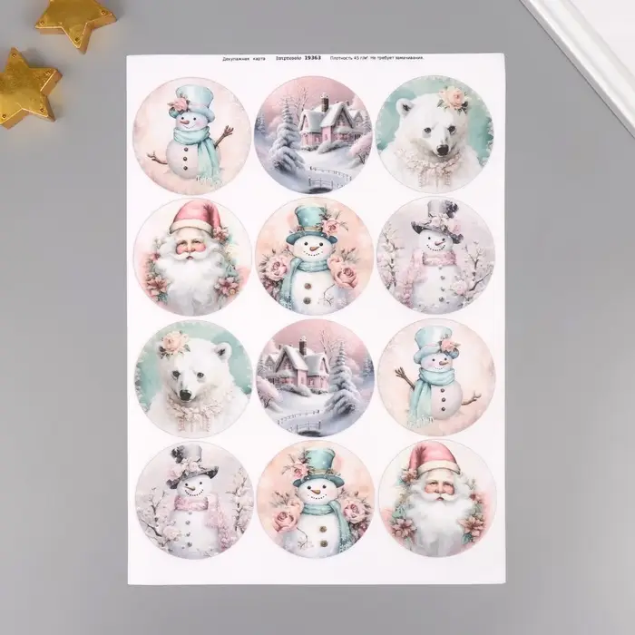 Декупажная карта "Снеговики", плотность 45 г/м2, формат А4