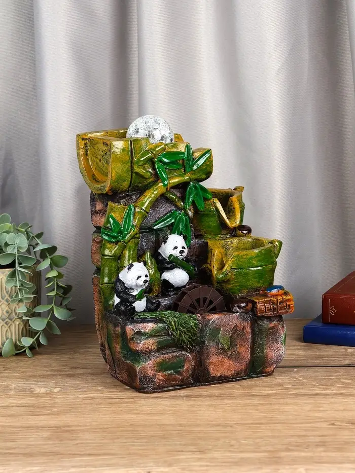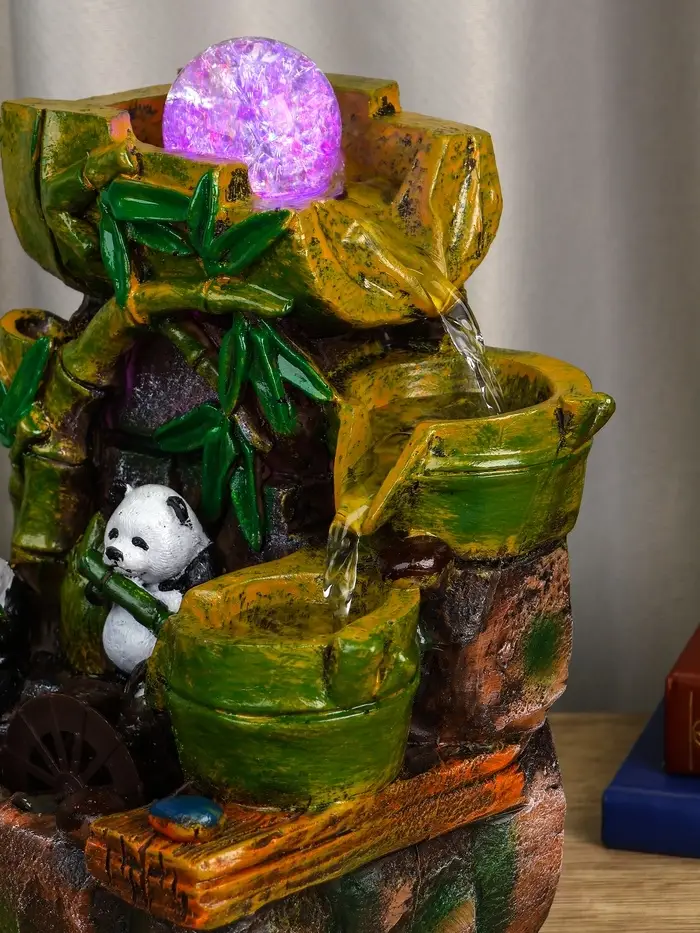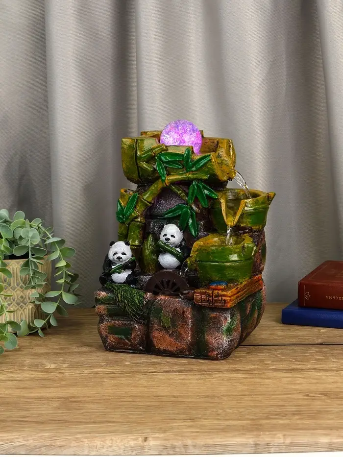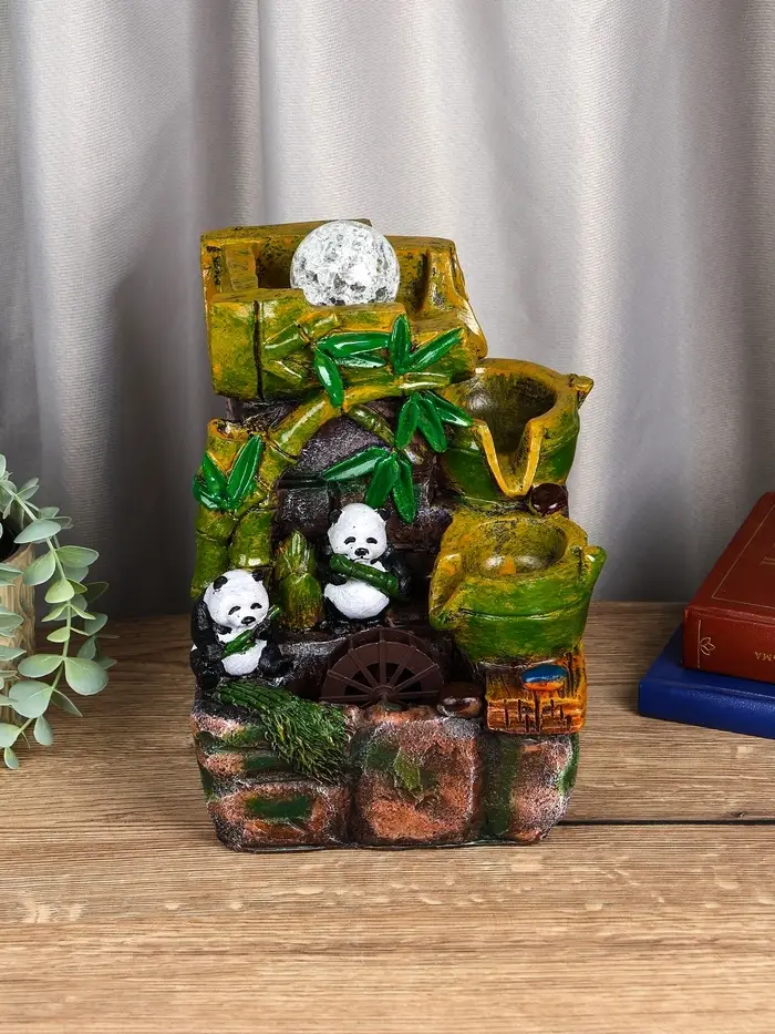 Фонтан "Панды на мельнице" 25х15х16 см (с подсветкой)