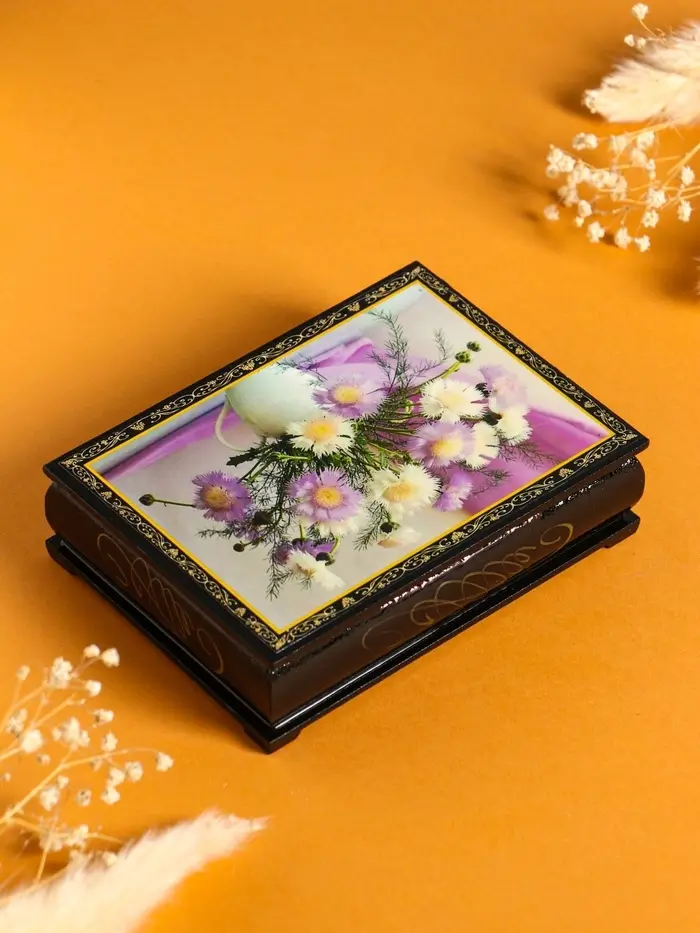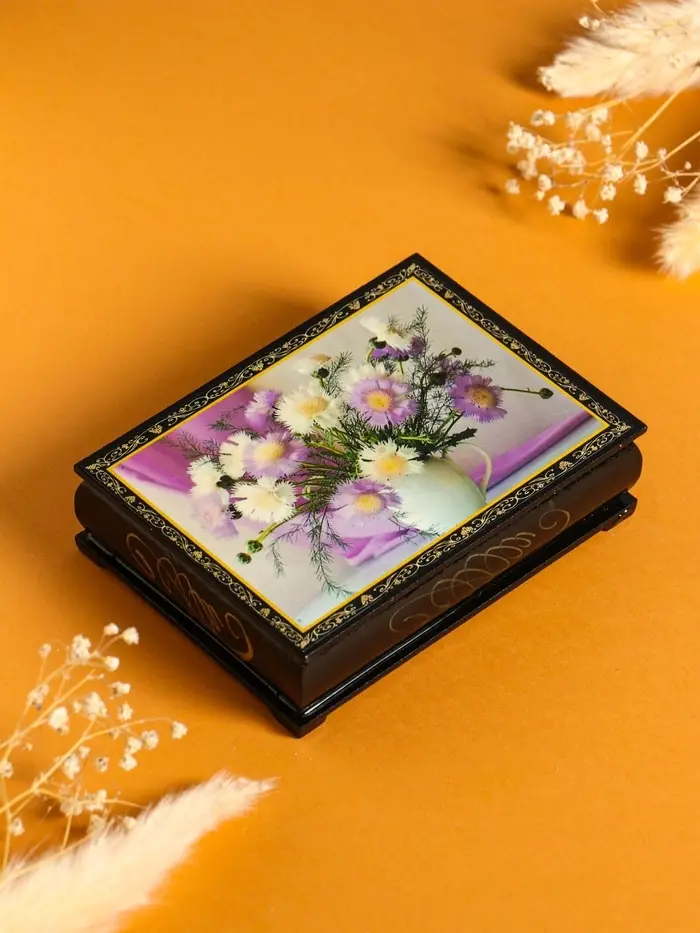 Шкатулка «Цветы в кувшине», 10×14 см, лаковая миниатюра