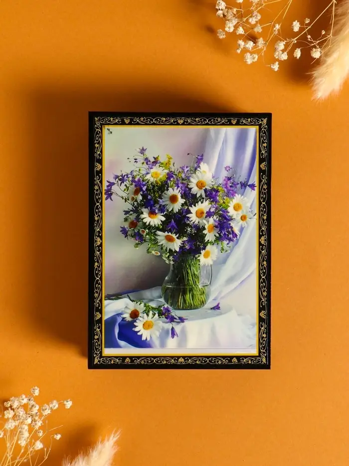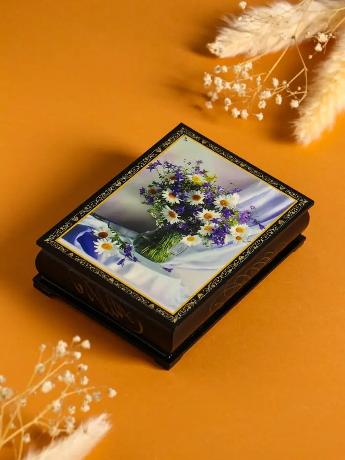 Шкатулка «Букет с ромашками», 10×14 см, лаковая миниатюра