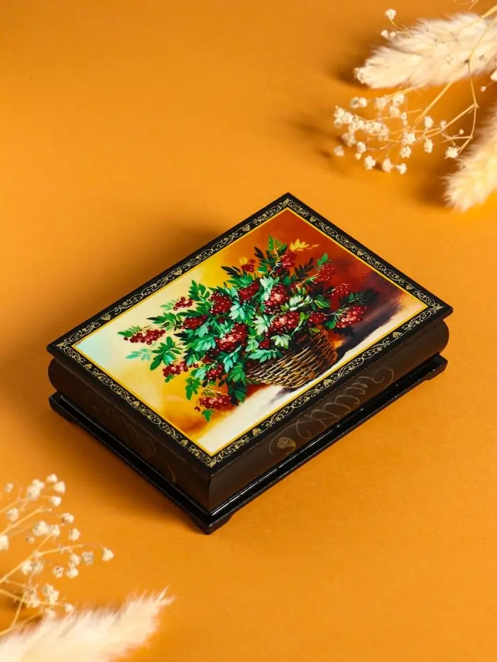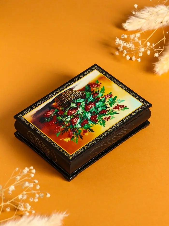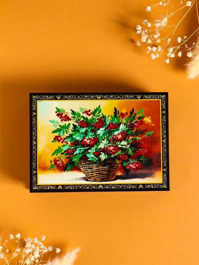 Шкатулка «Рябина в корзине», 10×14 см, лаковая миниатюра