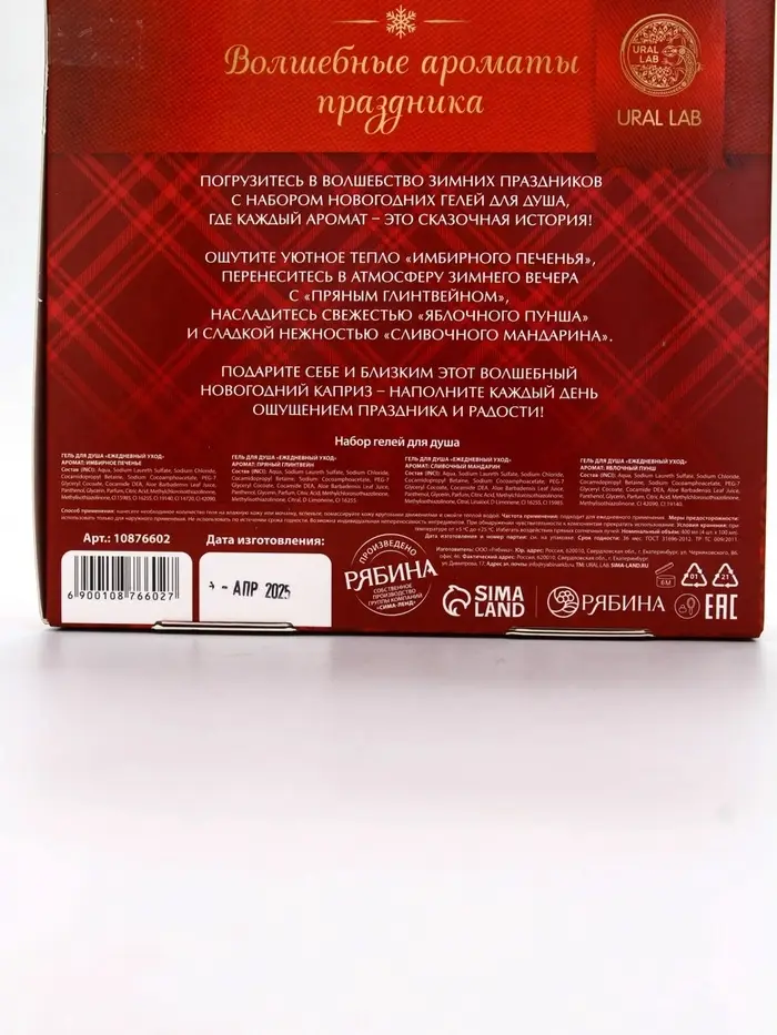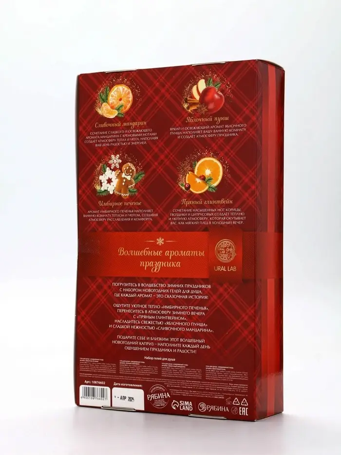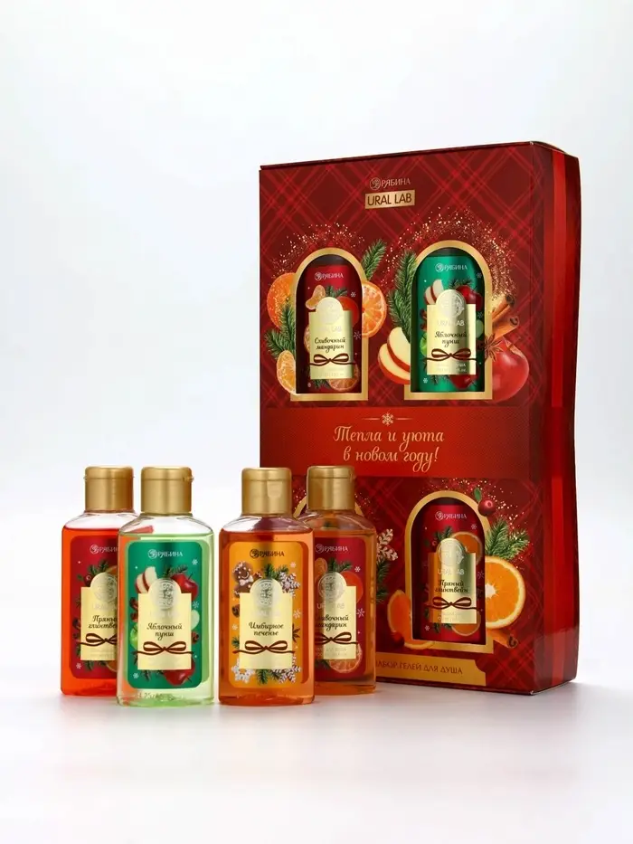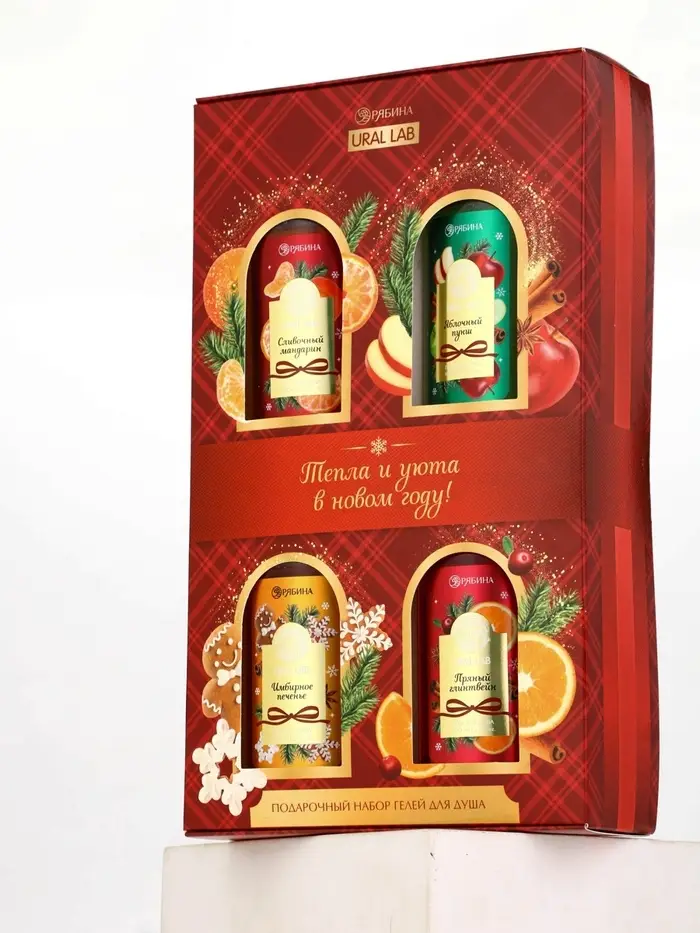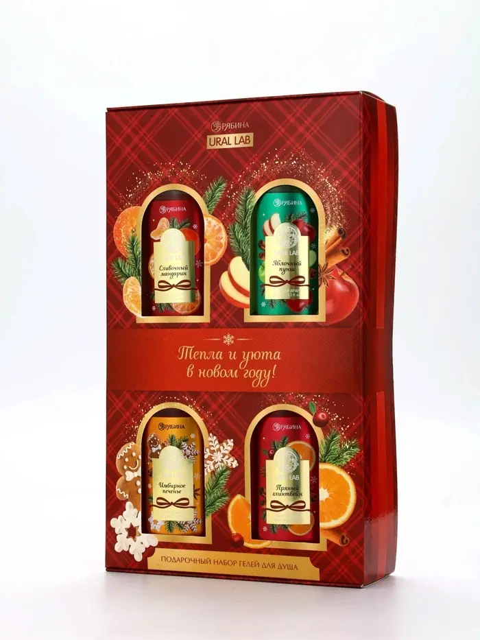URAL LAB Арома Саунд Набор "Тепла и уюта в Новом году", 4 геля для душа,4х100