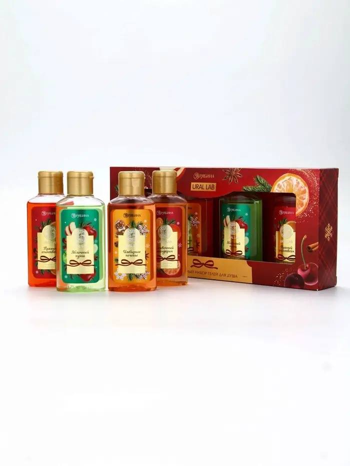URAL LAB Арома Саунд Набор гелей для душа. 4х100 мл, мандарин, тыква, яблоко и глинтвейн