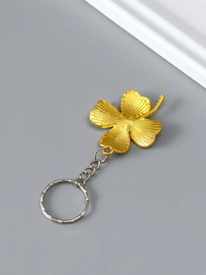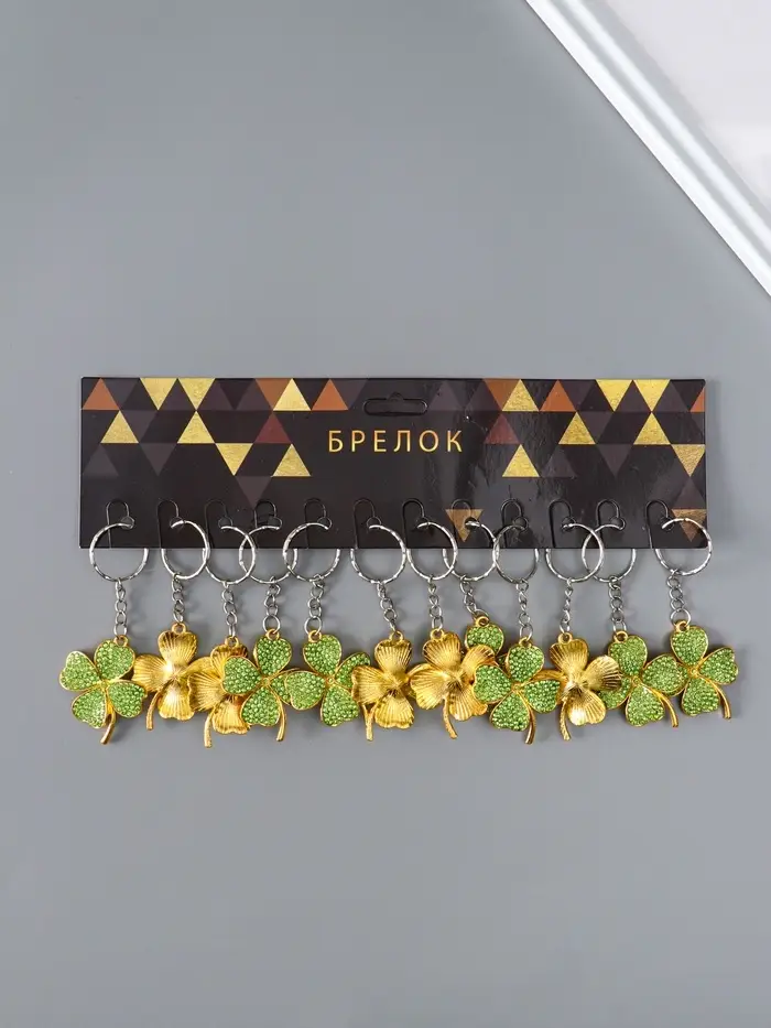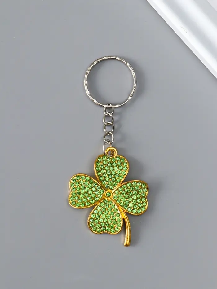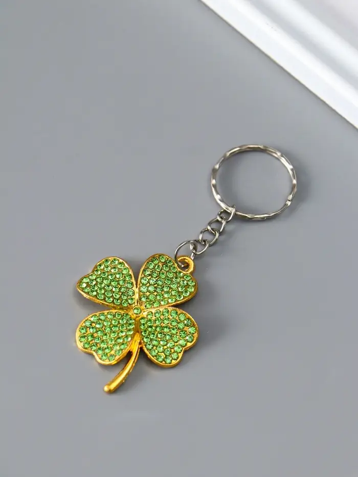 Брелок металл со стразами "Клевер" золото 3,8х3,8х0,3 см