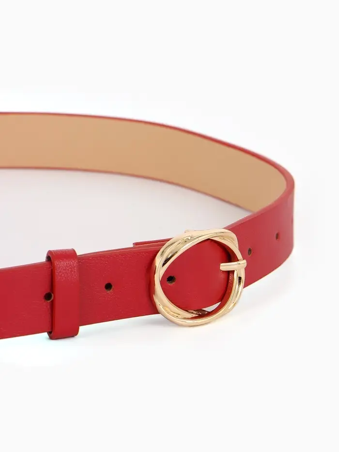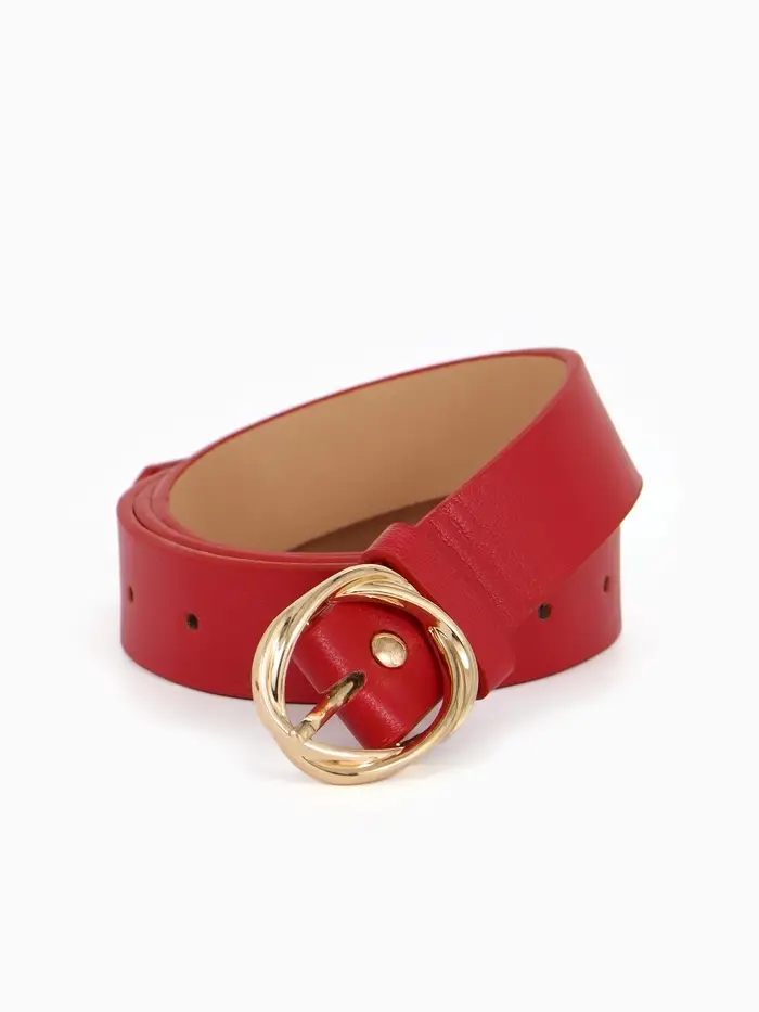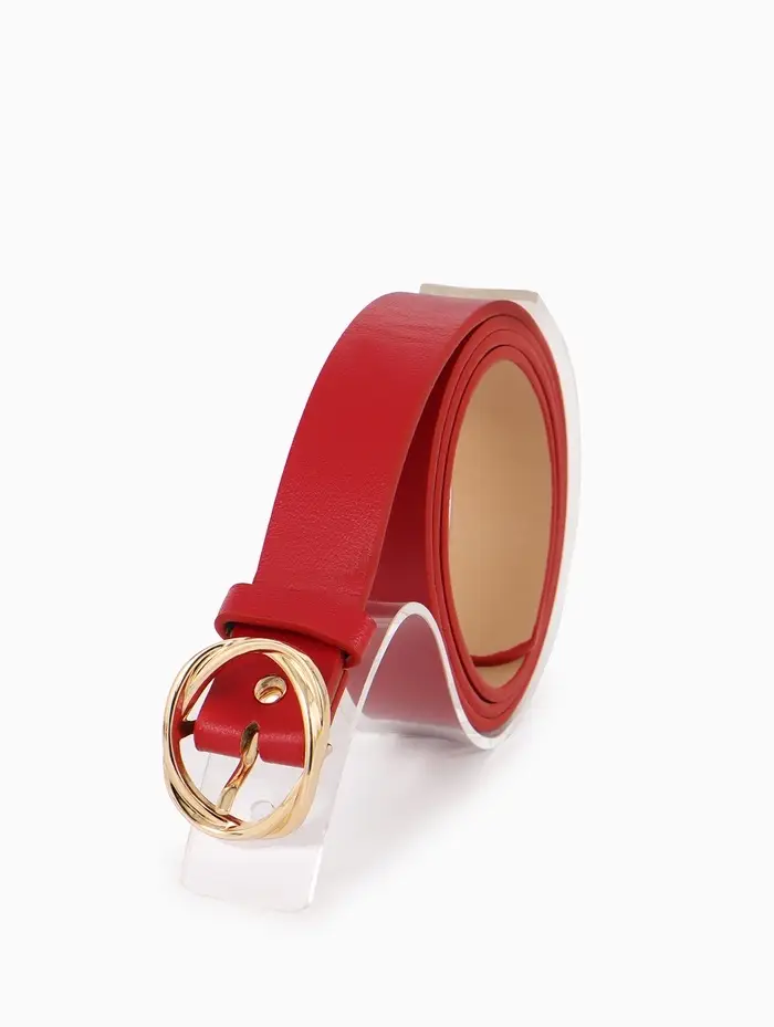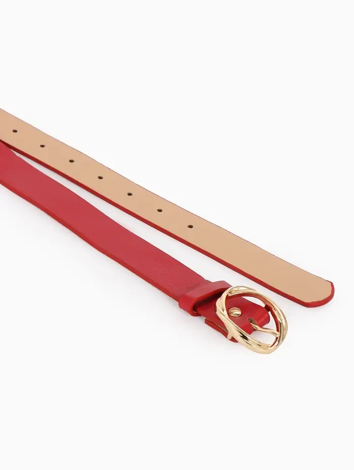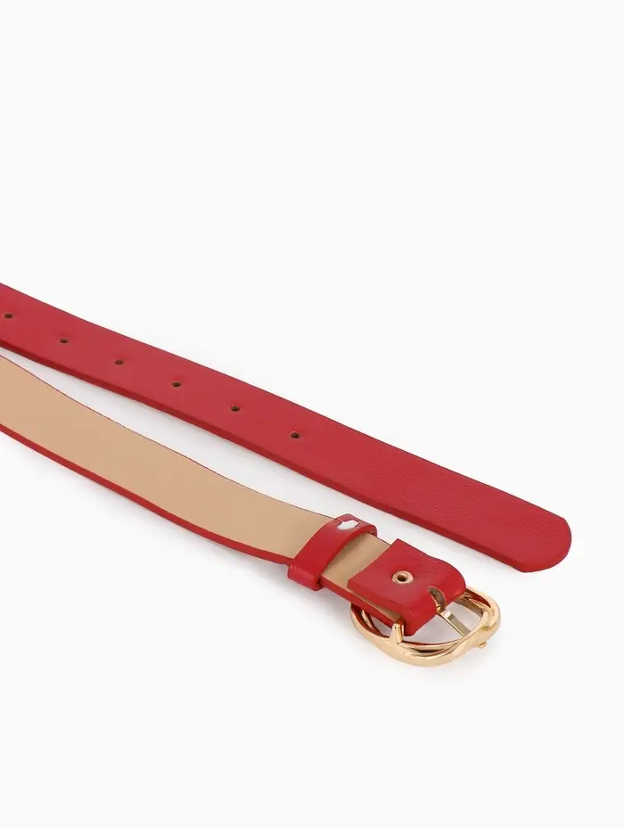 Ремень жен 05-01-01-01, Июнь2510, 2,9*0,3*110 см, без винта, пряж золото, 1 прокол, красный 109031