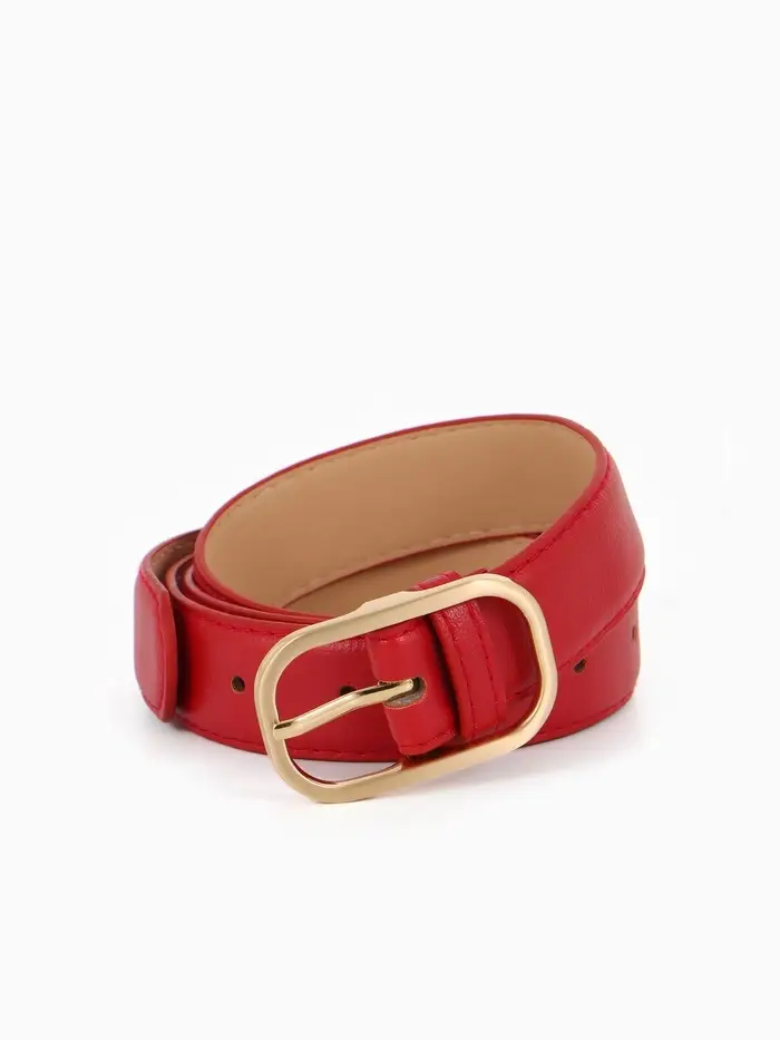 Ремень жен 05-01-01-01, Июнь2512, 3*0,3*110 см, без винта, пряж золото, 1 прокол, красный