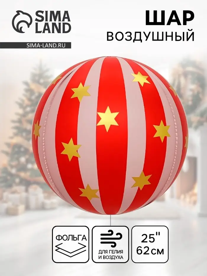 Воздушный шар фольгированный 25" сфера "Новгодний шар" цвет красный