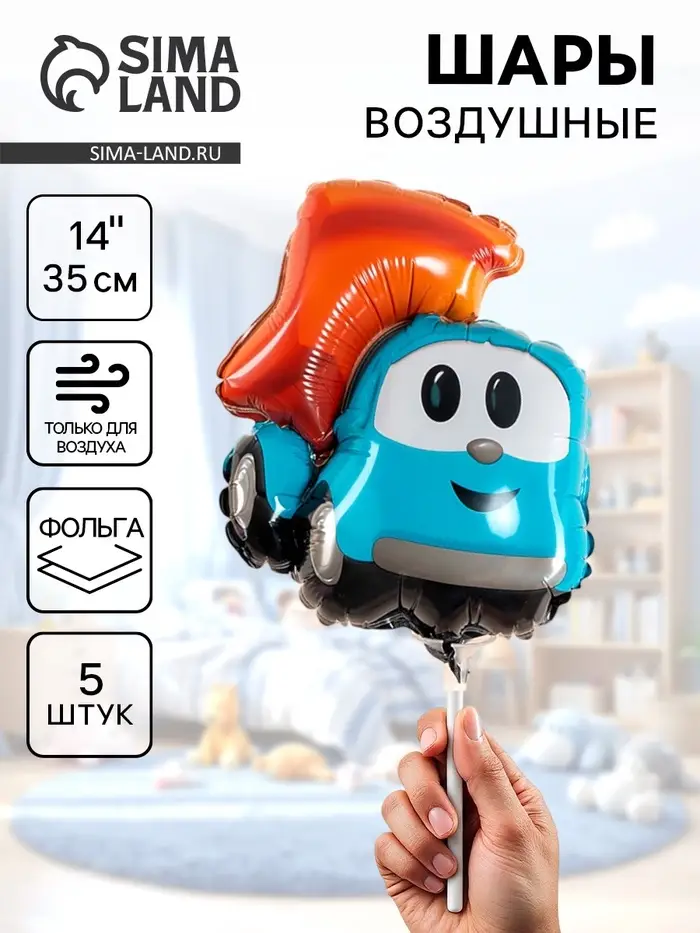 Воздушные шары фольгированные 14" «Грузовичок Лева» набор 5 шт.