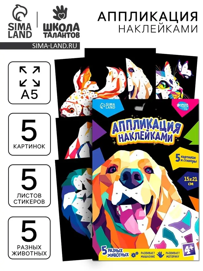 Аппликация наклейками "Яркие животные"