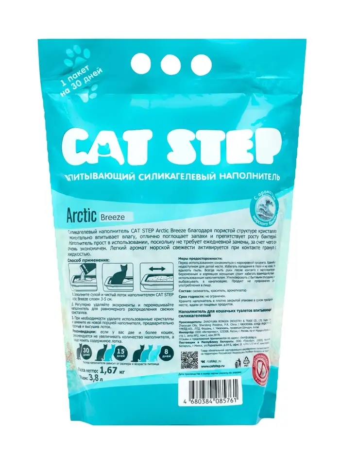 Наполнитель впитывающий силикагелевый CAT STEP Arctic Breeze, 3,8 л