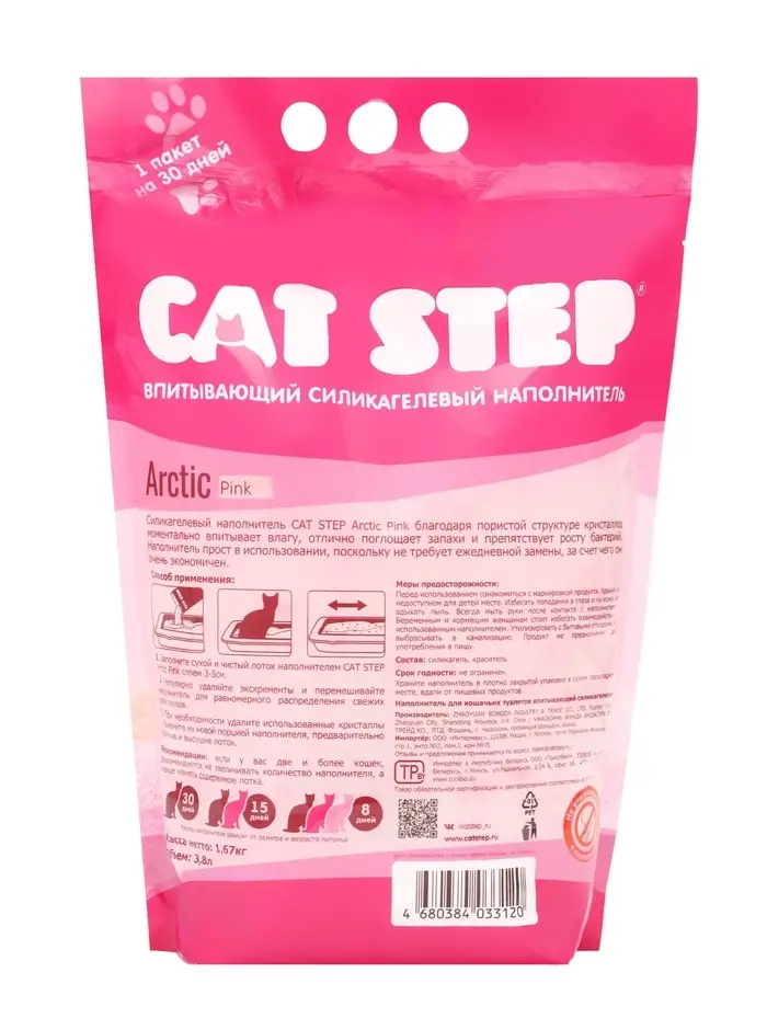 Наполнитель впитывающий силикагелевый CAT STEP Arctic Pink, 3,8 л