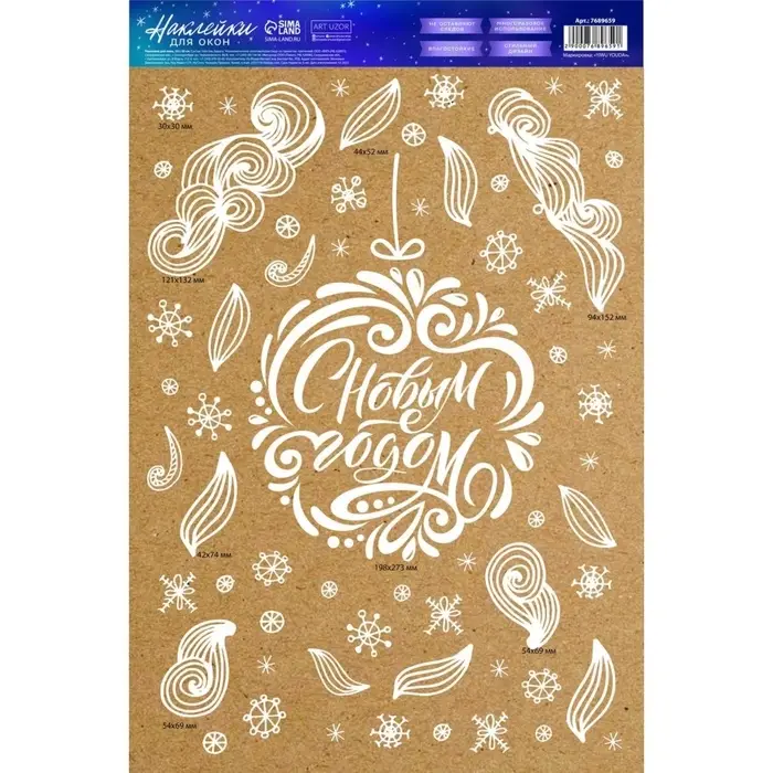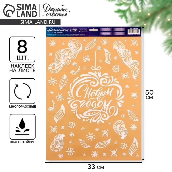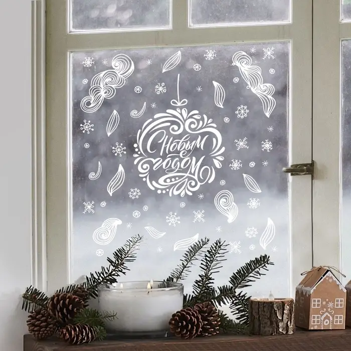 Наклейки новогодние на окна «Зимние узоры», многоразовые, многоразовые, 33 х 50 см