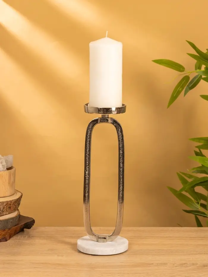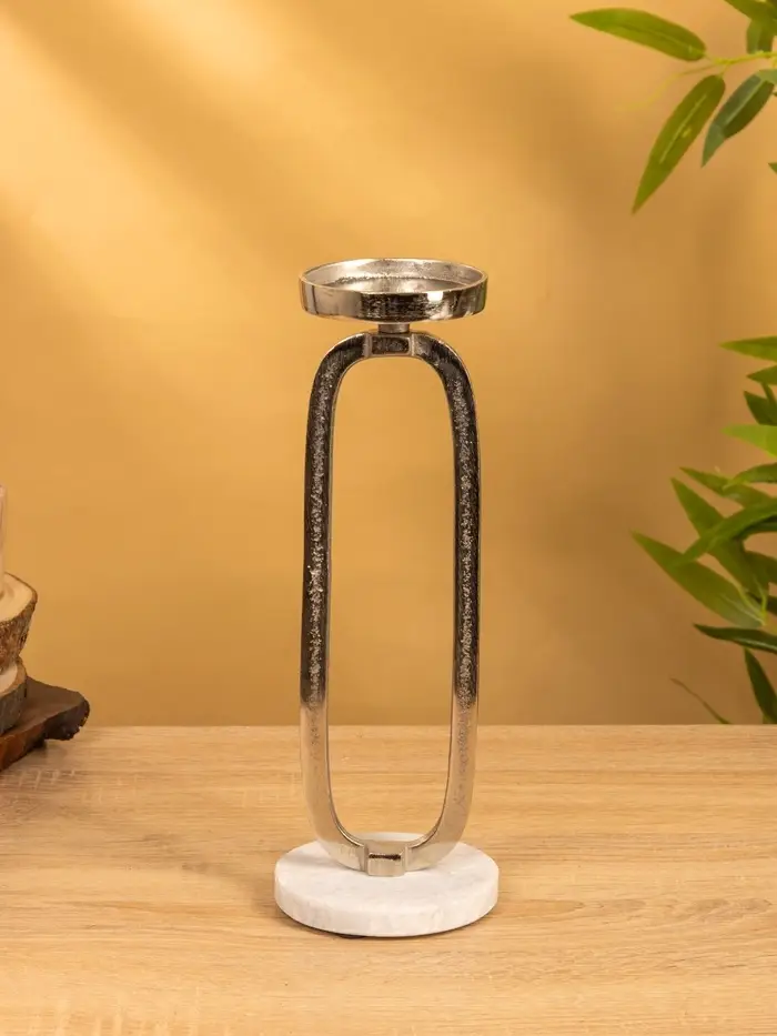 Подсвечник "Эллипс" 10х10х30 см, d 7,5 см, алюминий, мрамор
