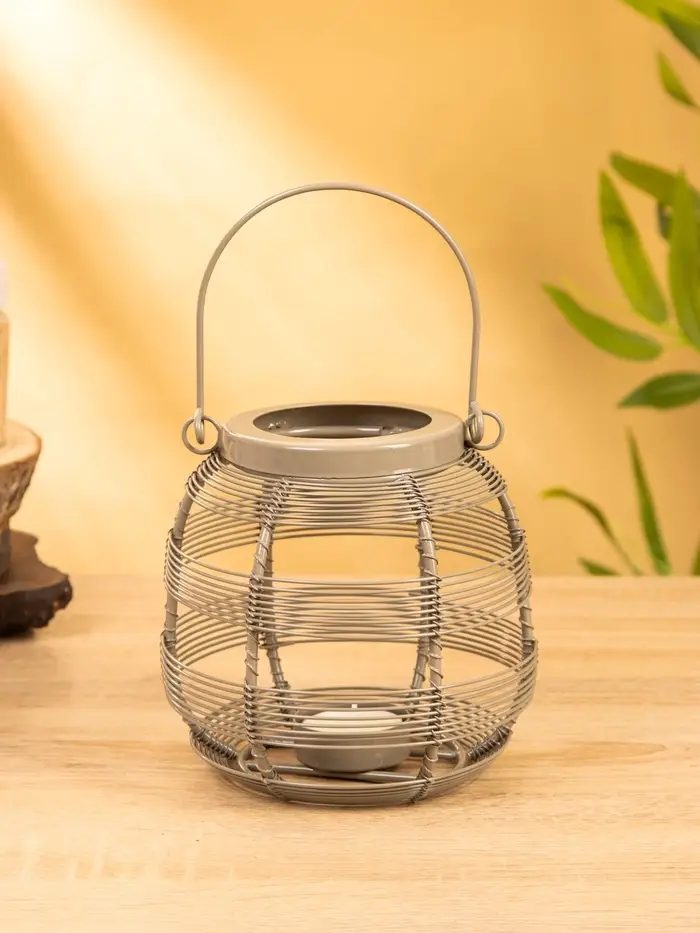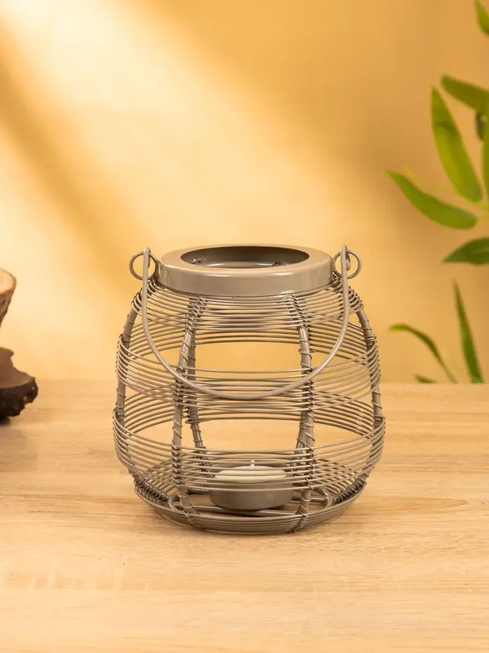 Подсвечник фонарь 14,5х14,5х13,5 см, для свечи 4 см. металл, цв. серый