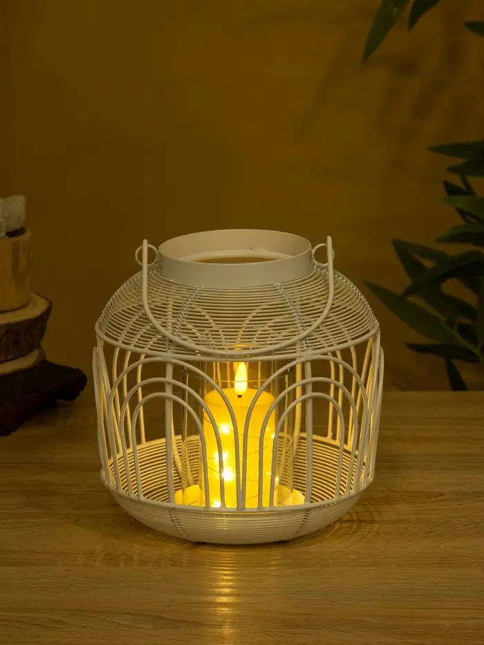 Подсвечник фонарь со стеклянной колбой 19х19х19,5 см, d 8,5 см, металл, цв. Белый
