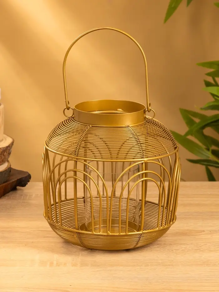 Подсвечник фонарь со стеклянной колбой 19х19х19,5 см, d 8,5 см, металл, цв. Золото