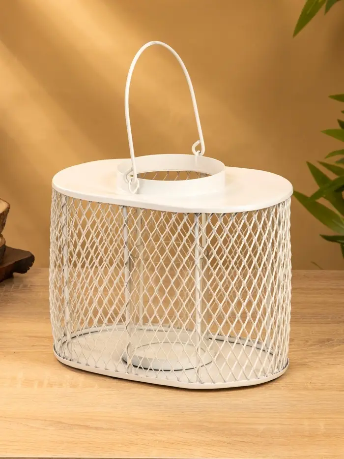 Подсвечник фонарь со стеклянной колбой 19,5х23х15,5 см, d 10 см, металл, цв. белый