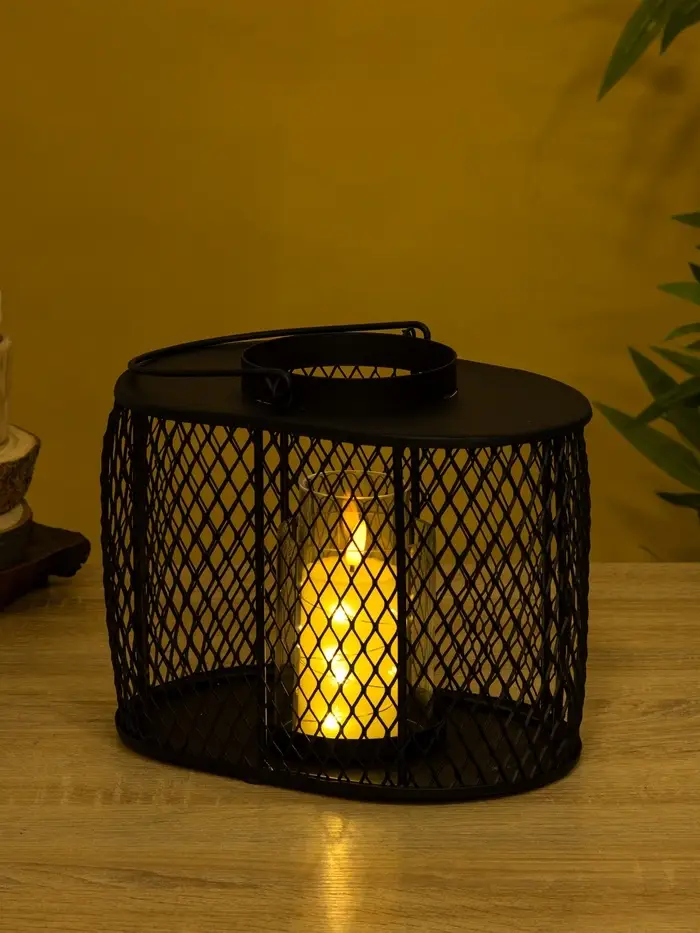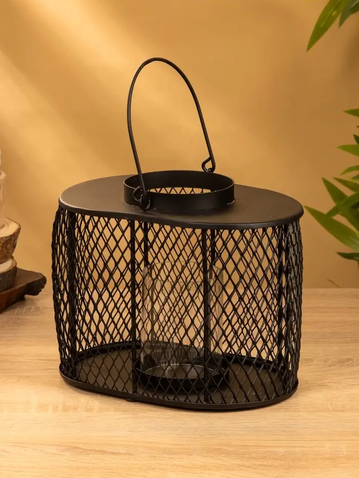 Подсвечник фонарь со стеклянной колбой 19,5х23х15,5 см, d 10 см, металл, цв. чёрный