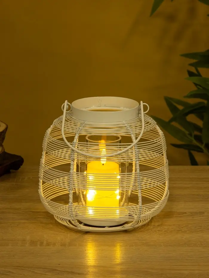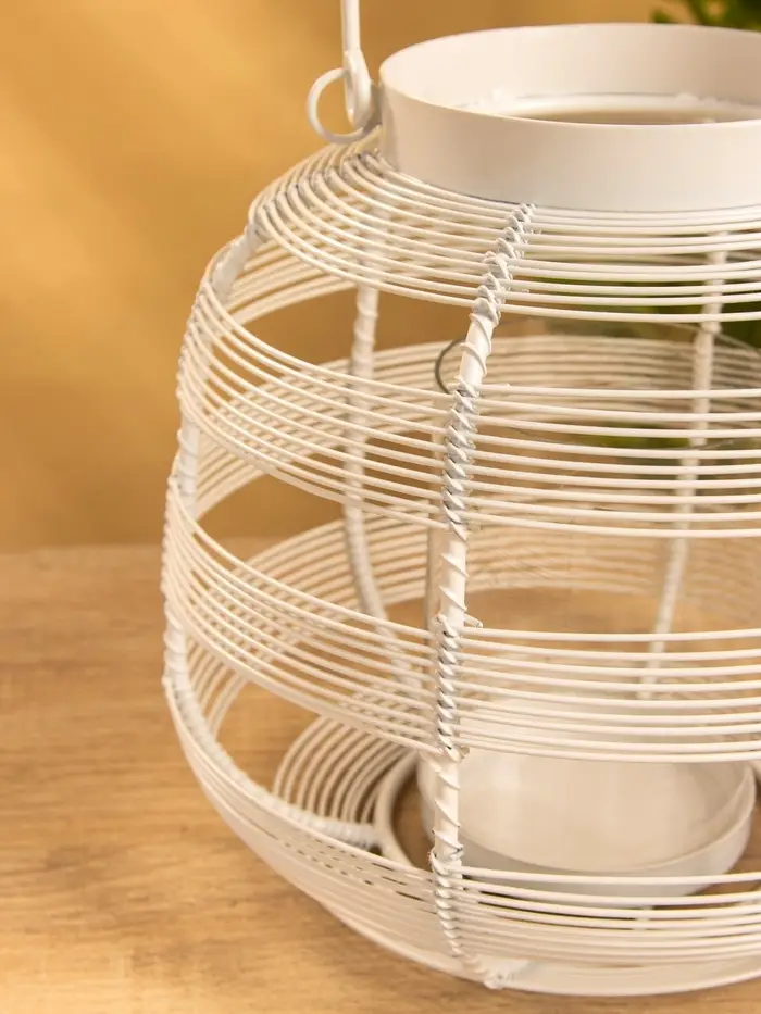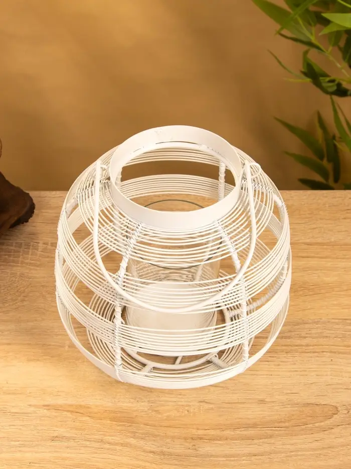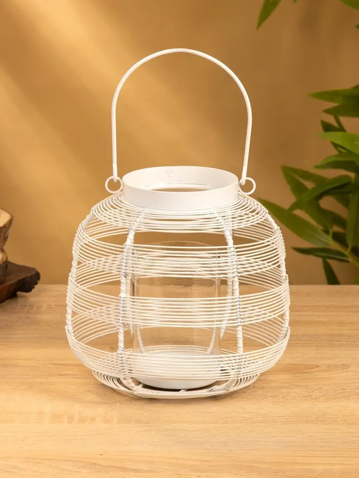 Подсвечник фонарь со стеклянной колбой, 19×19×18 см, d=9 см, металл, белый