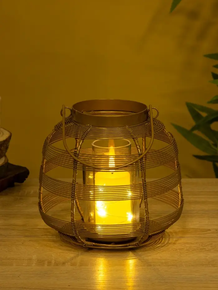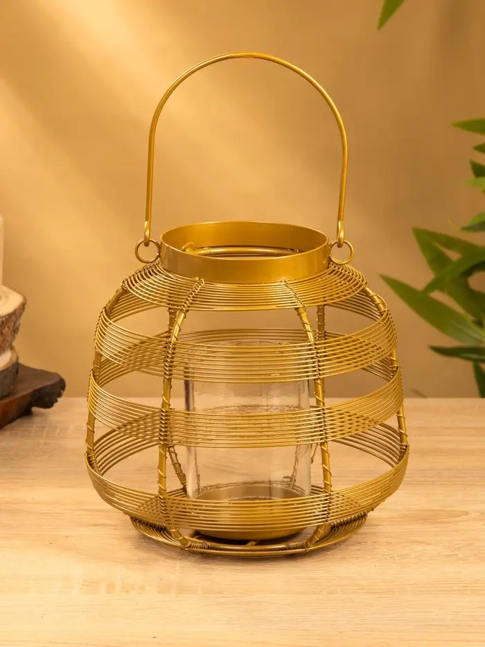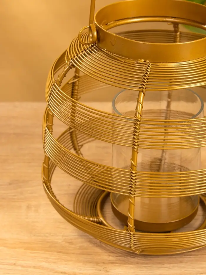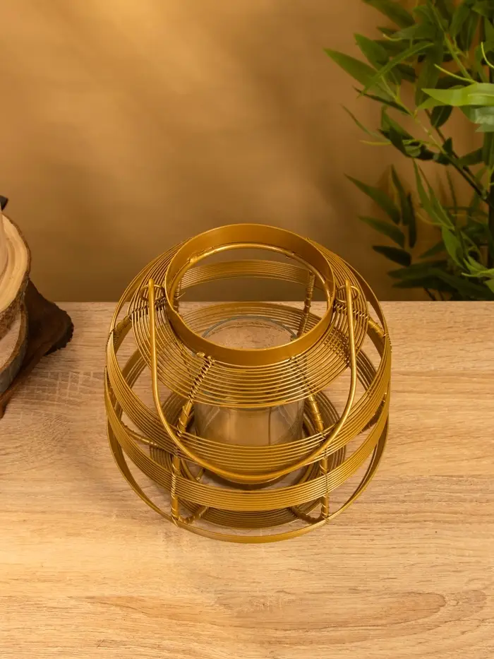 Подсвечник фонарь со стеклянной колбой 19х19х18 см, d 7,5 см, металл, цв. золото