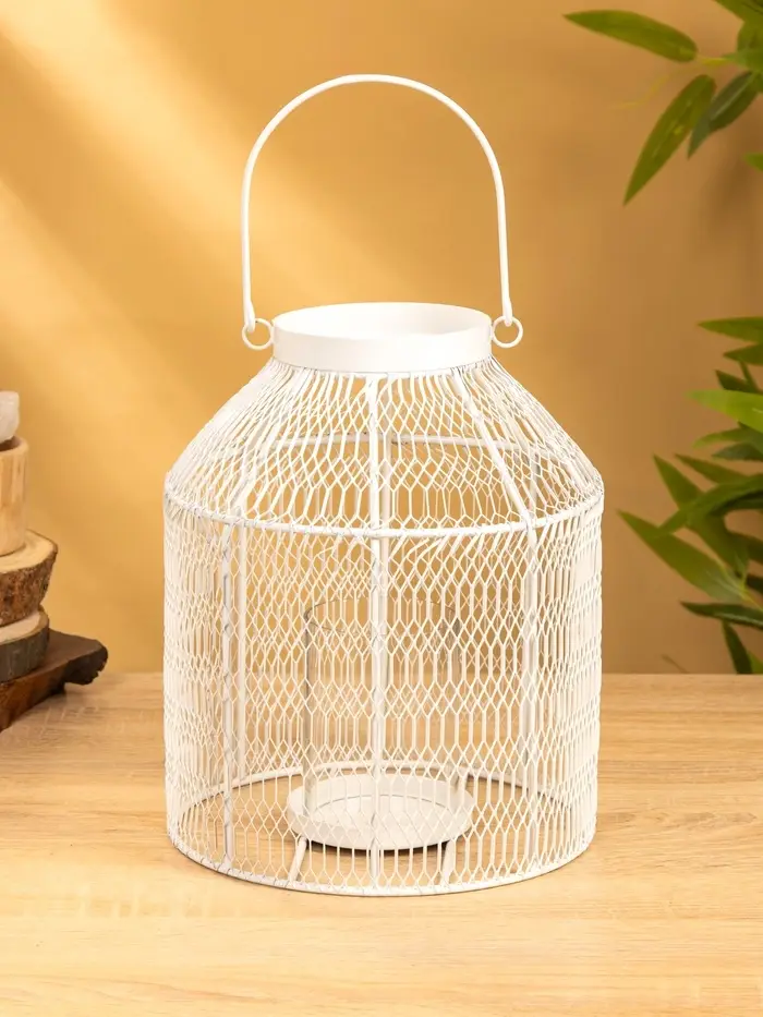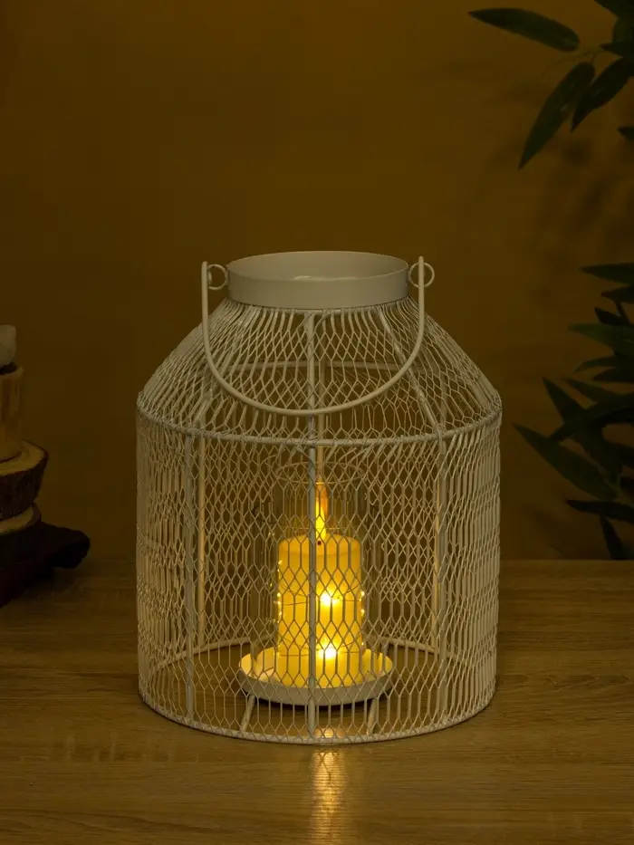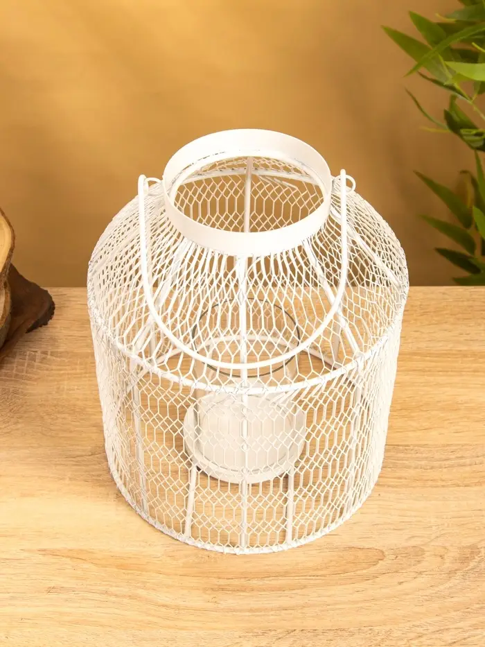 Подсвечник фонарь со стеклянной колбой 20,5х20,5х25 см, d 9 см, металл, цв. белый