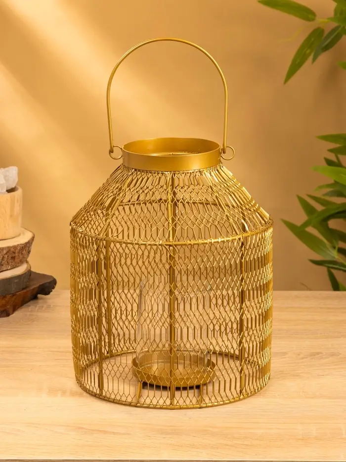 Подсвечник фонарь со стеклянной колбой 20х20х26 см, d 9 см, металл, цв. золото