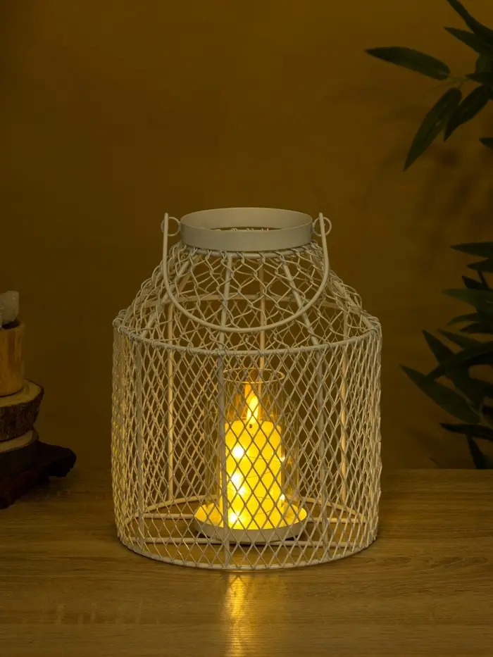 Подсвечник фонарь со стеклянной колбой 20х20х26 см, d 10 см, металл, цв. белый