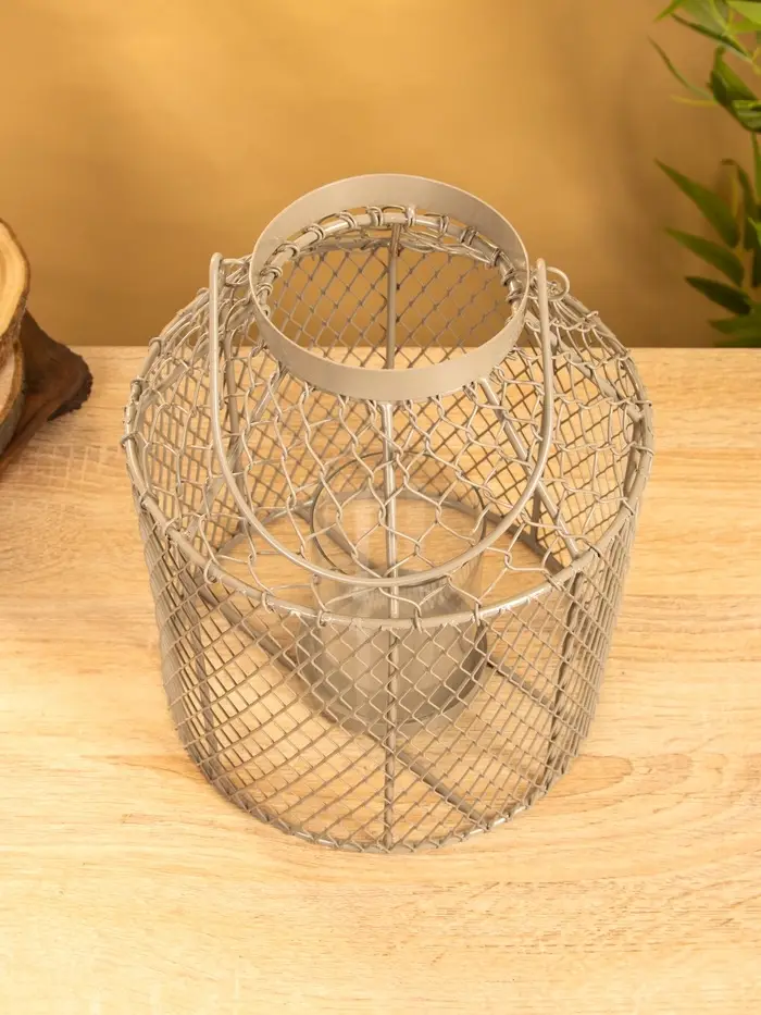 Подсвечник фонарь со стеклянной колбой 20х20х26 см, d 10 см, металл, цв. серый