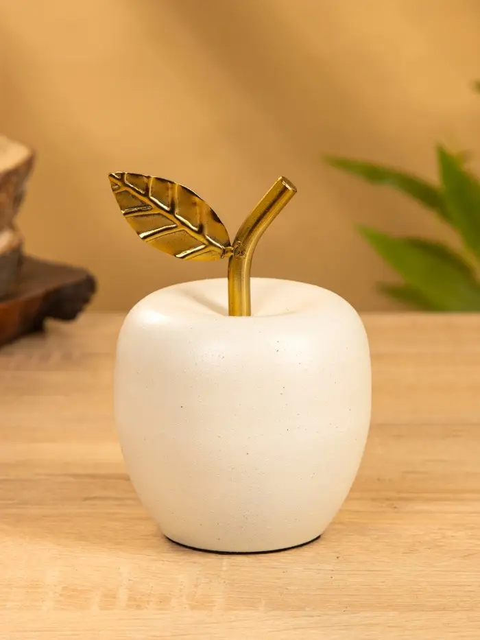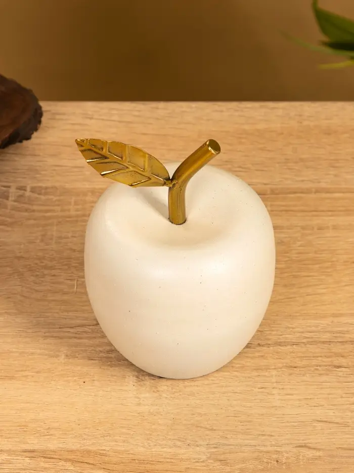 Сувенир "Яблоко с золотым листом" 10х10х12 см, цв. матовый белый
