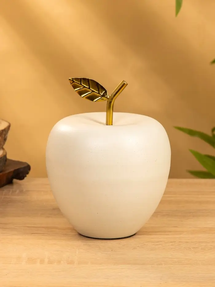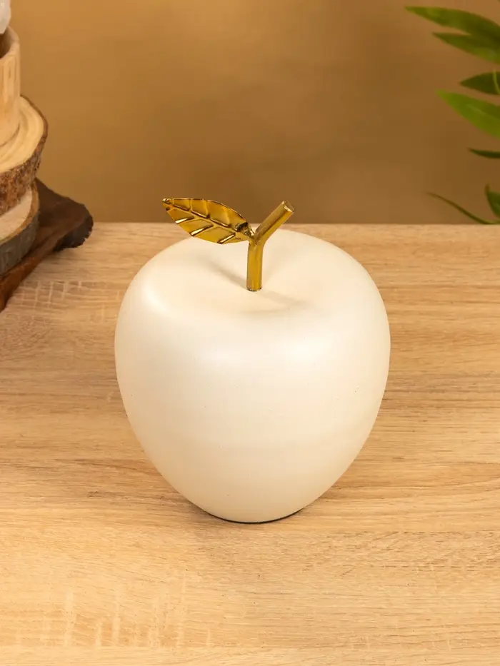 Сувенир "Яблоко с золотым листом" 14,5х14,5х18 см, цв. матовый белый
