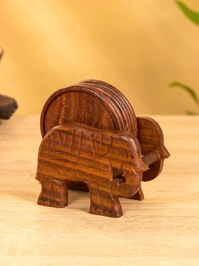 Подставка под горячее "Слон" (набор 6 шт), 12х12х6,5 см, дерево шишам