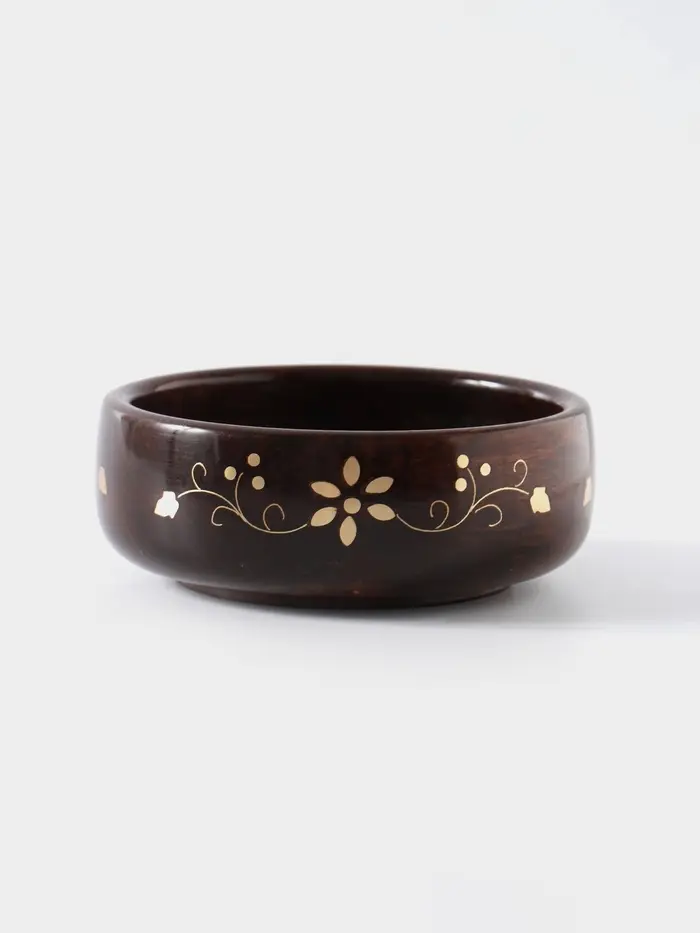 - Растительный орнамент: Боковые стенки украшены резным узором, вдохновленным природными формами. Этот декор делает чашу самодостаточным элементом стола, который не требует дополнительного украшения и создает особое настроение.