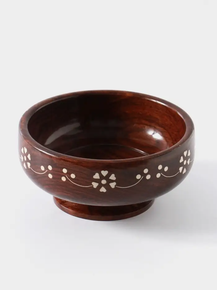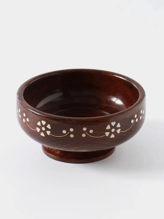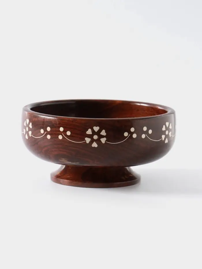 Деревянная посуда, в которой сервировка становится искусством. Салатник на ножке из дерева шишам с резным орнаментом — это утонченная сервировочная чаша для тех, кто ценит натуральные материалы и ручную работу. Каждое изделие уникально благодаря теплу дерева и мастерству резчика.