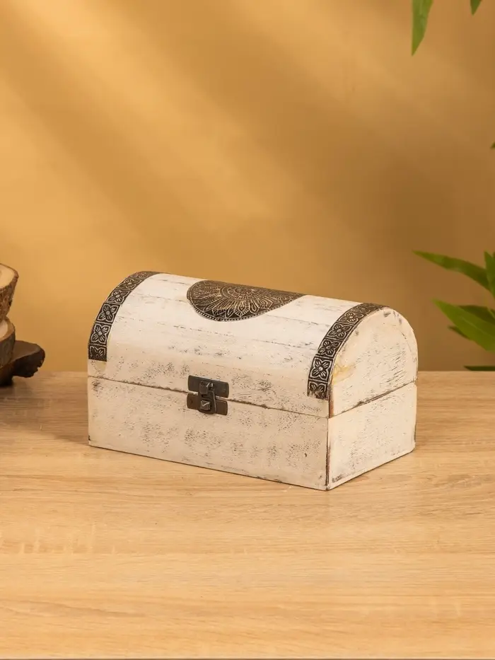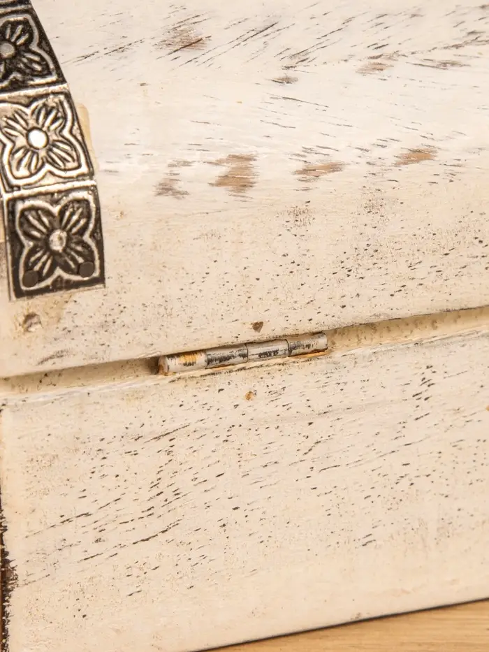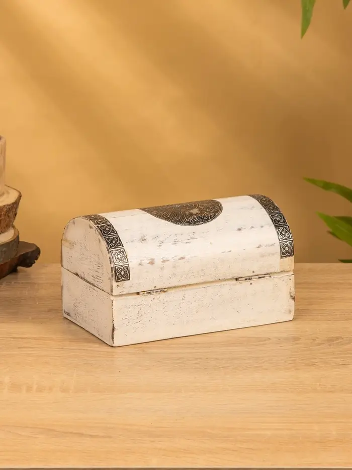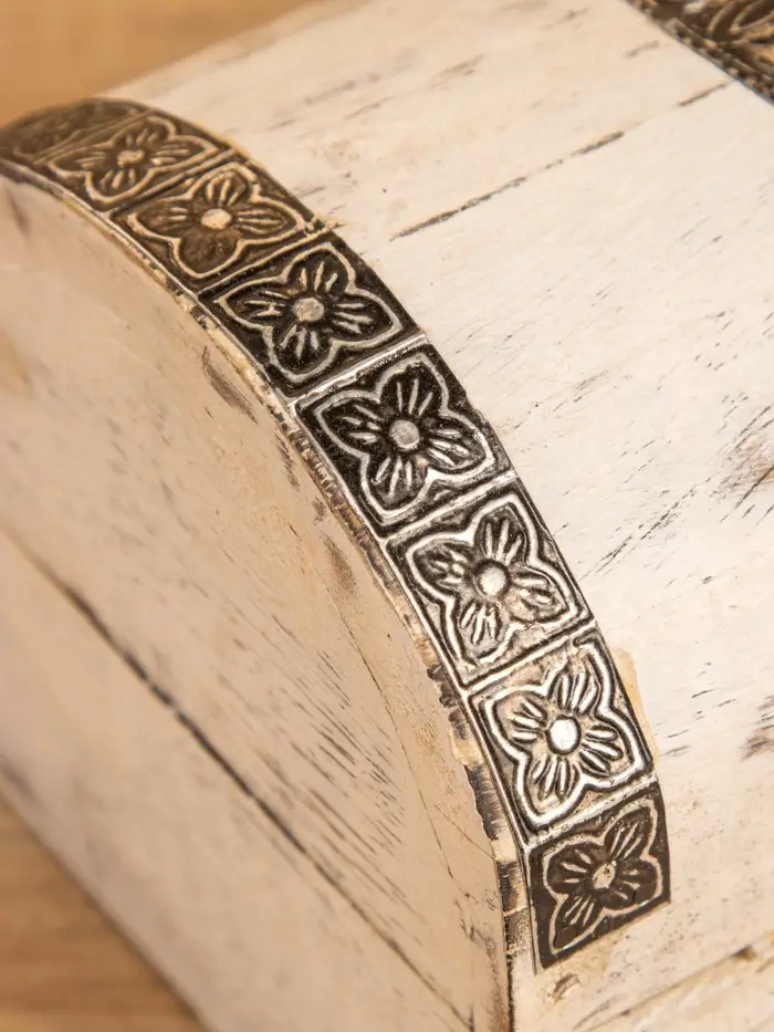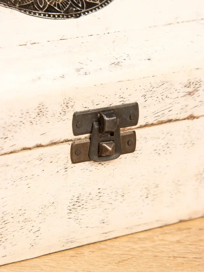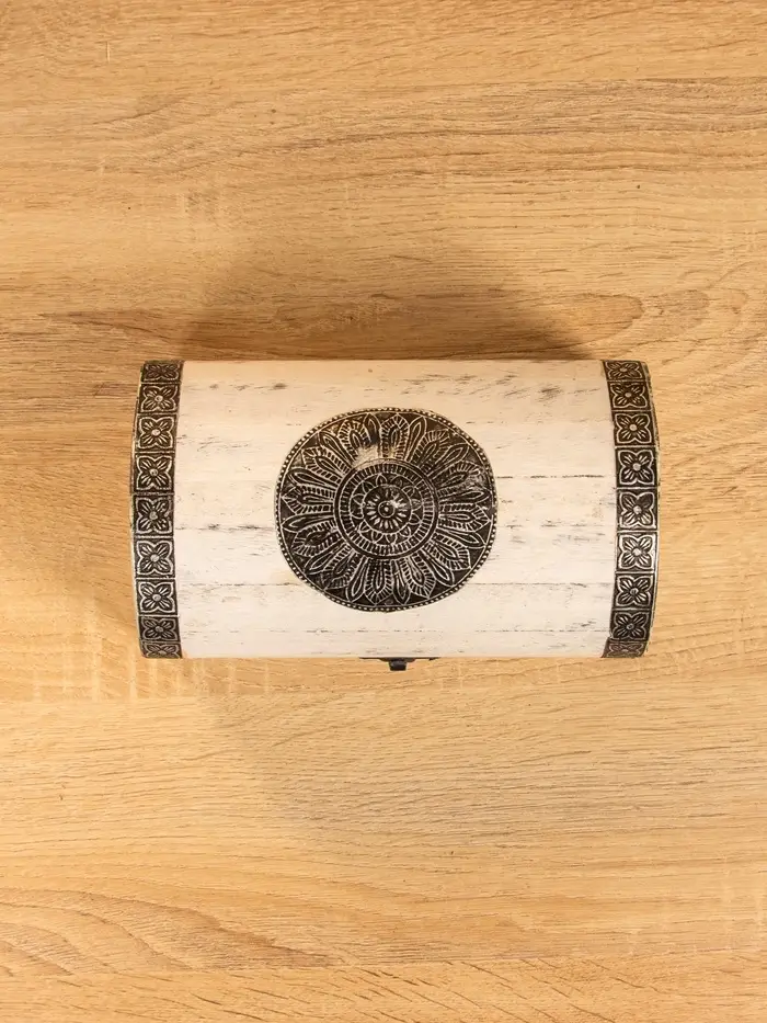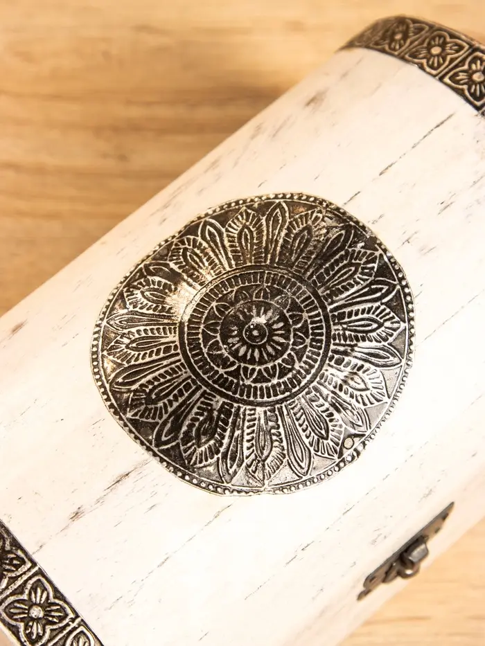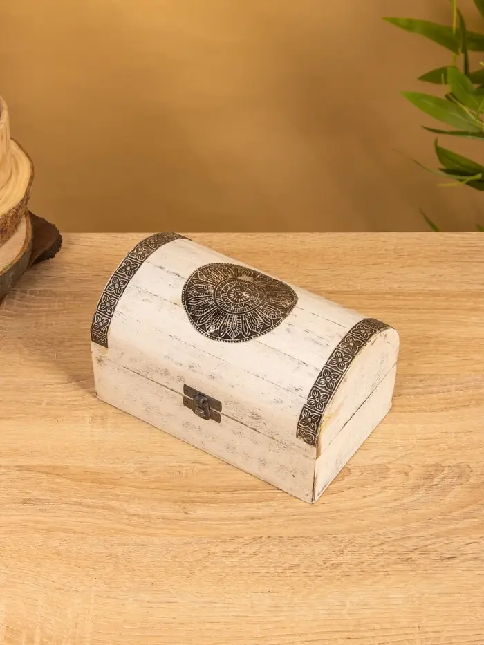Сундучок "Солнце ацтеков" 19х12х11 см, манговое дерево, белый антик